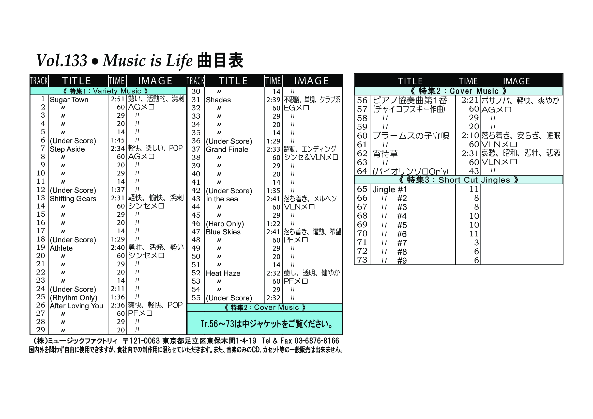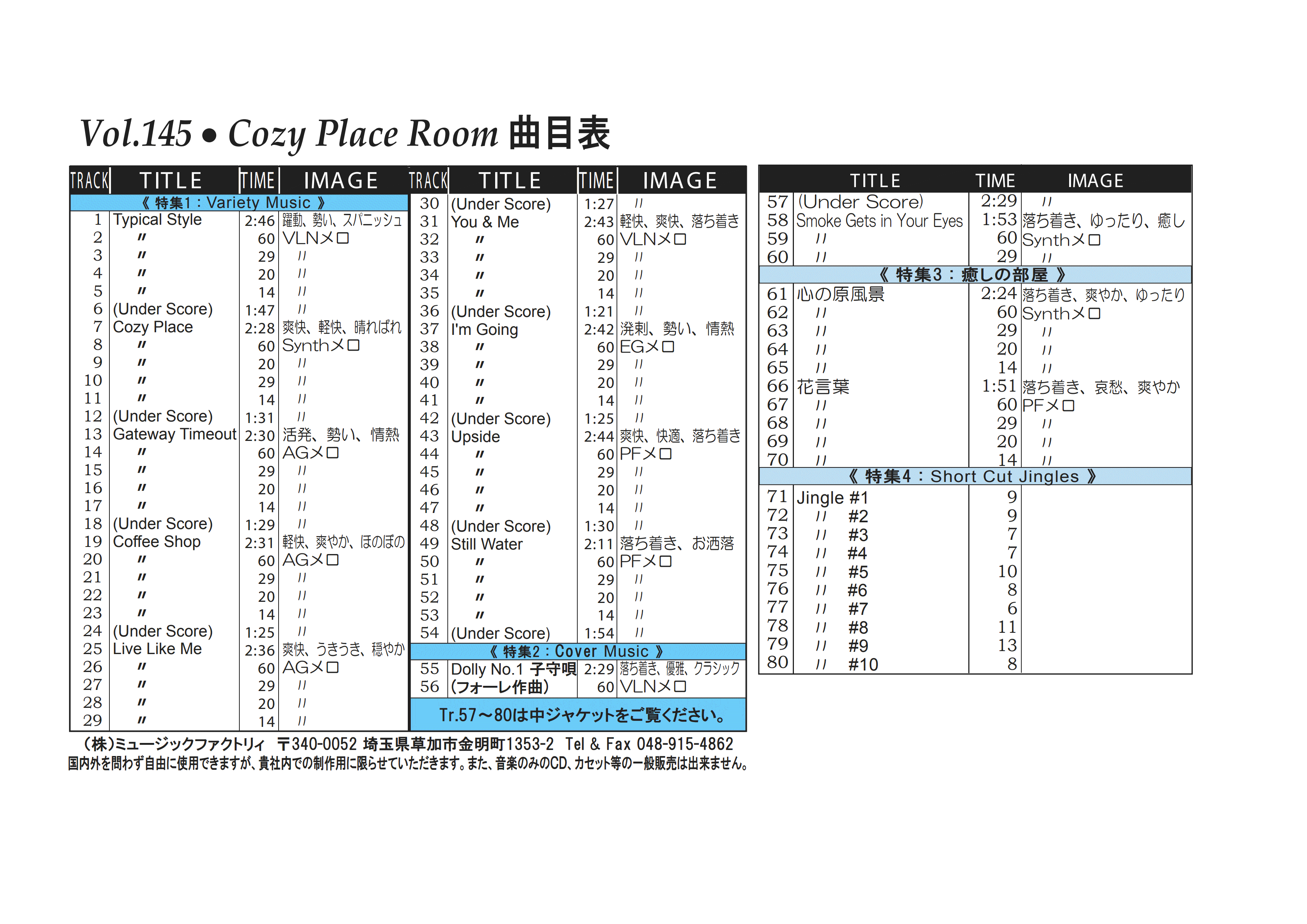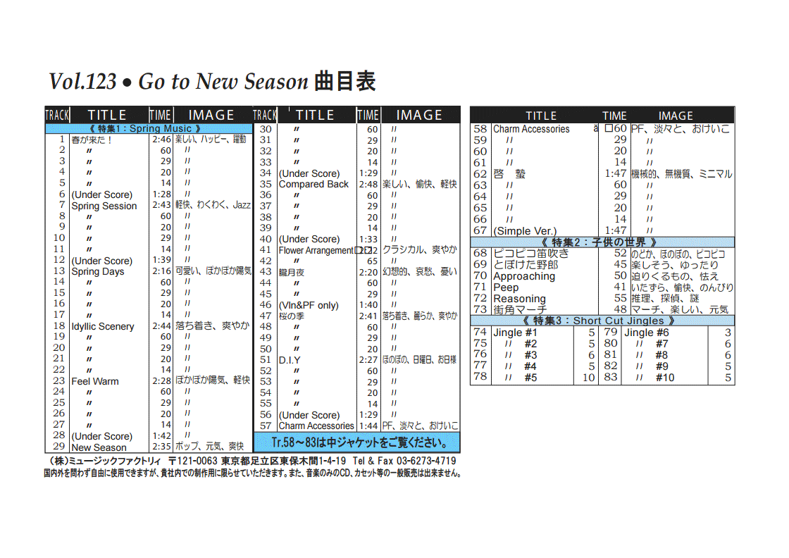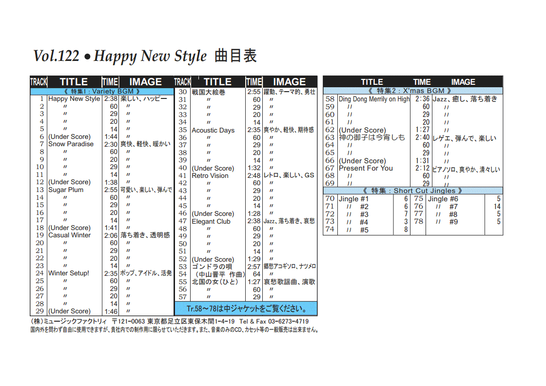 ・Vol.101 Autumn Color's Street ・Vol.102 Twinkle Winter'sTown ・Vol.103 Breath of The Flower ・Vol.104 Starting Summer ・Vol.105 Hand Made Cafe ・Vol.106 Winter's Pop Package ・Vol.107 Spring Shower ・Vol.108 Hotな気分で夏 ・Vol.109 Stylish Autumn BGM ・Vol.110 Fantastic Winter Tour
