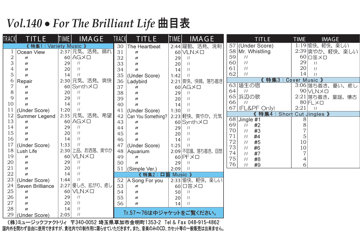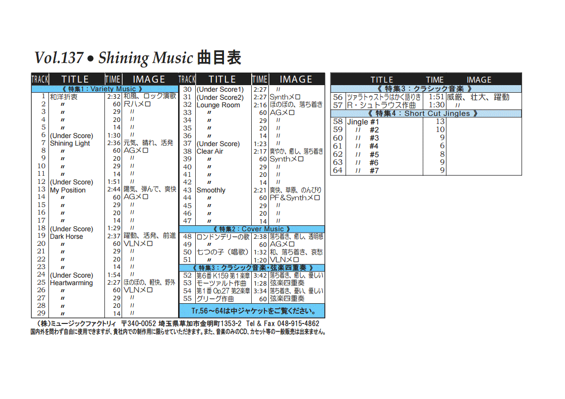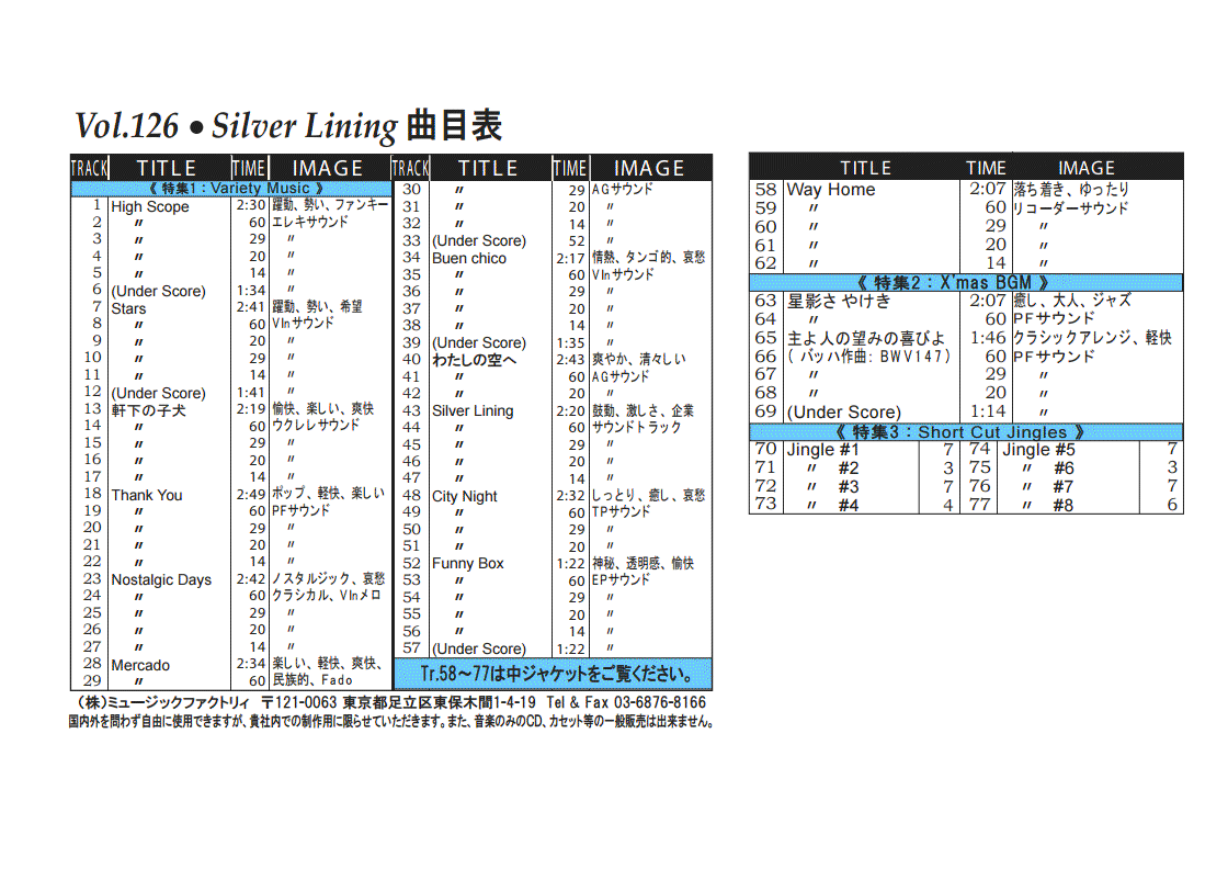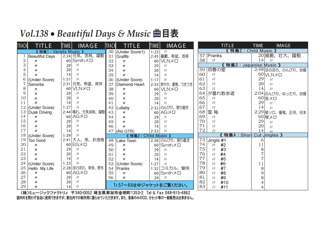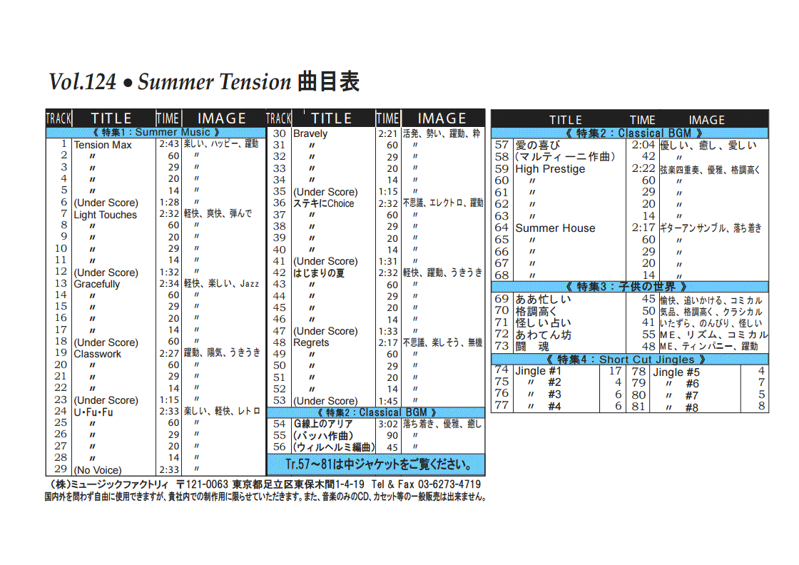 ・Vol.121 Beautiful Autumn ・Vol.122 Happy New Style ・Vol.123 Go to New Season ・Vol.124 Summer Tension ・Vol.125 Good Feeling Music ・Vol.126 Silver Lining ・Vol.127 Hope For The Future ・Vol.128 La Pasion ・Vol.129 Lifetime Chance ・Vol.130 Always Music