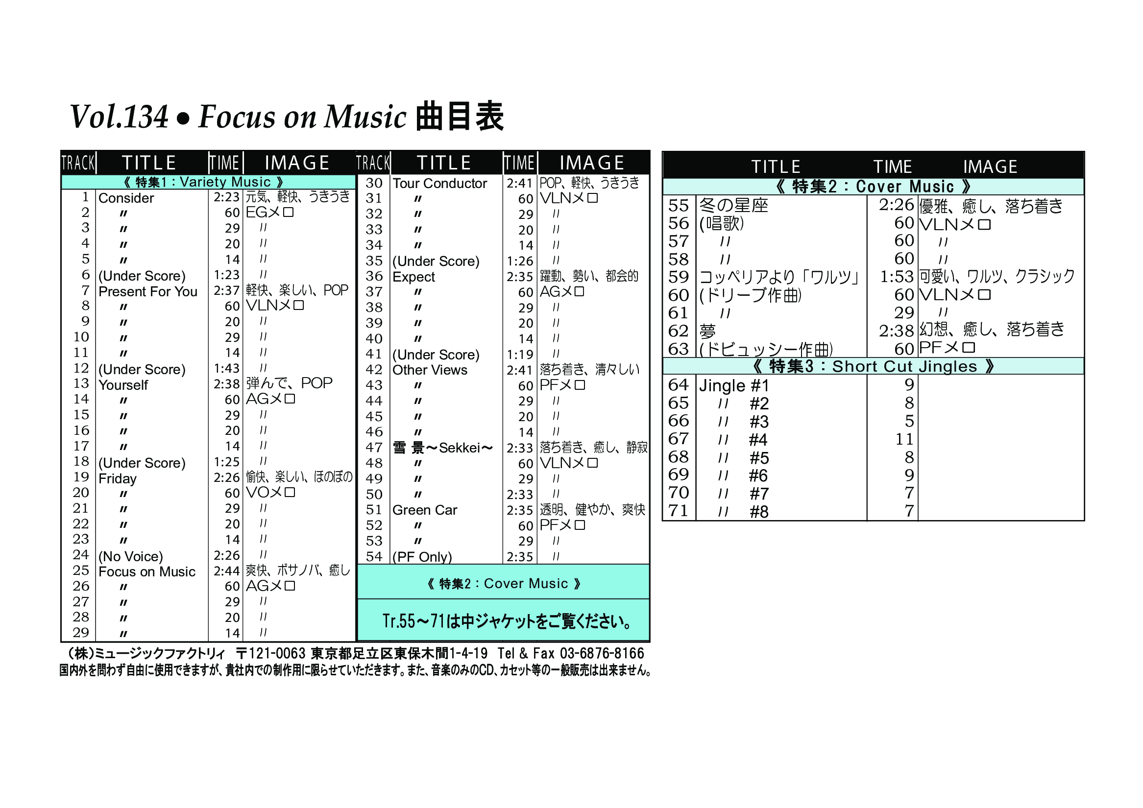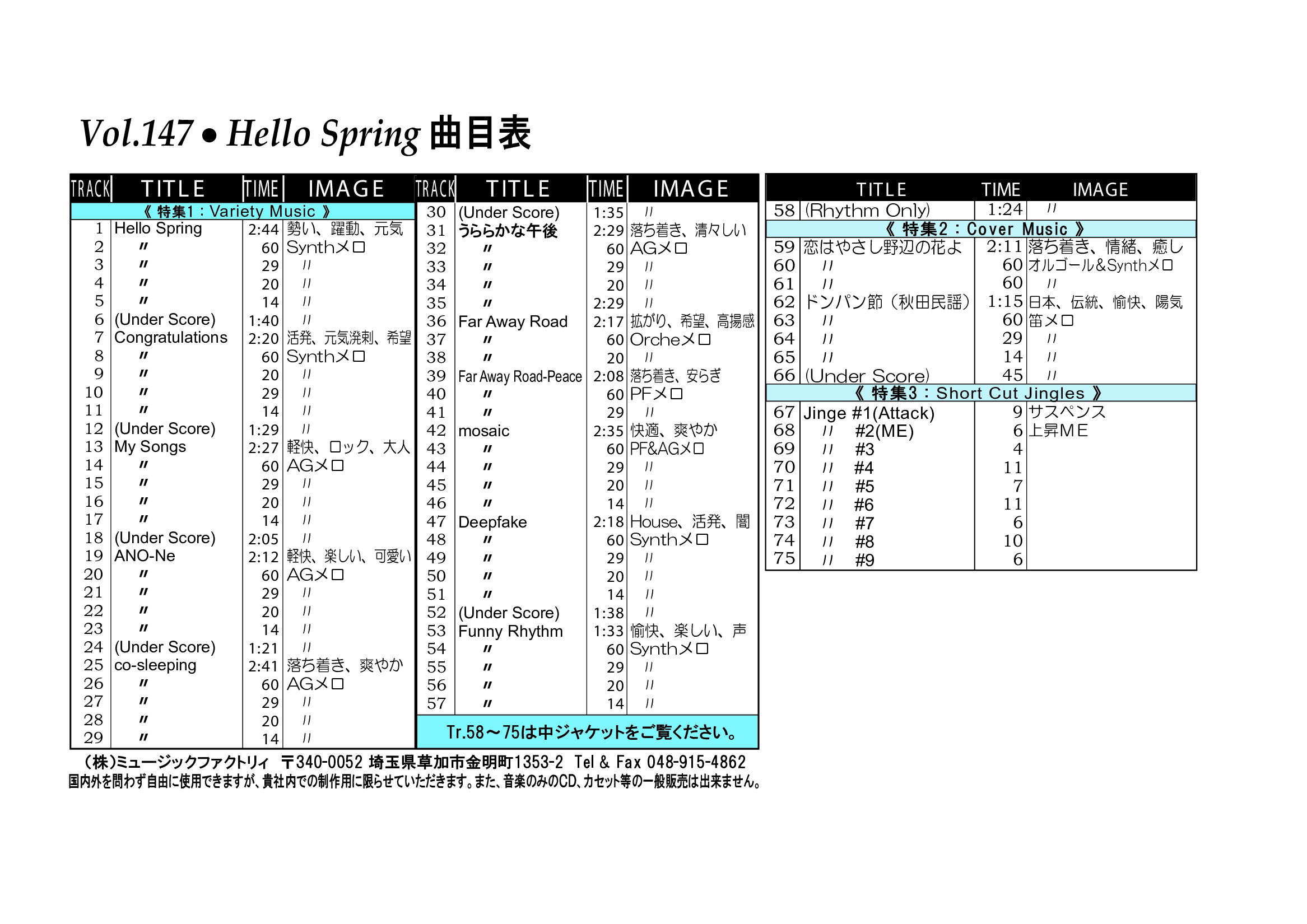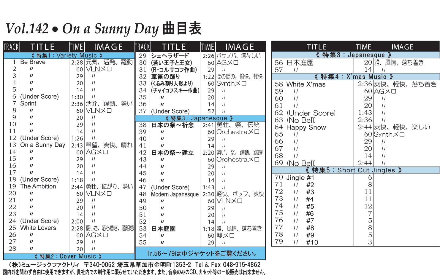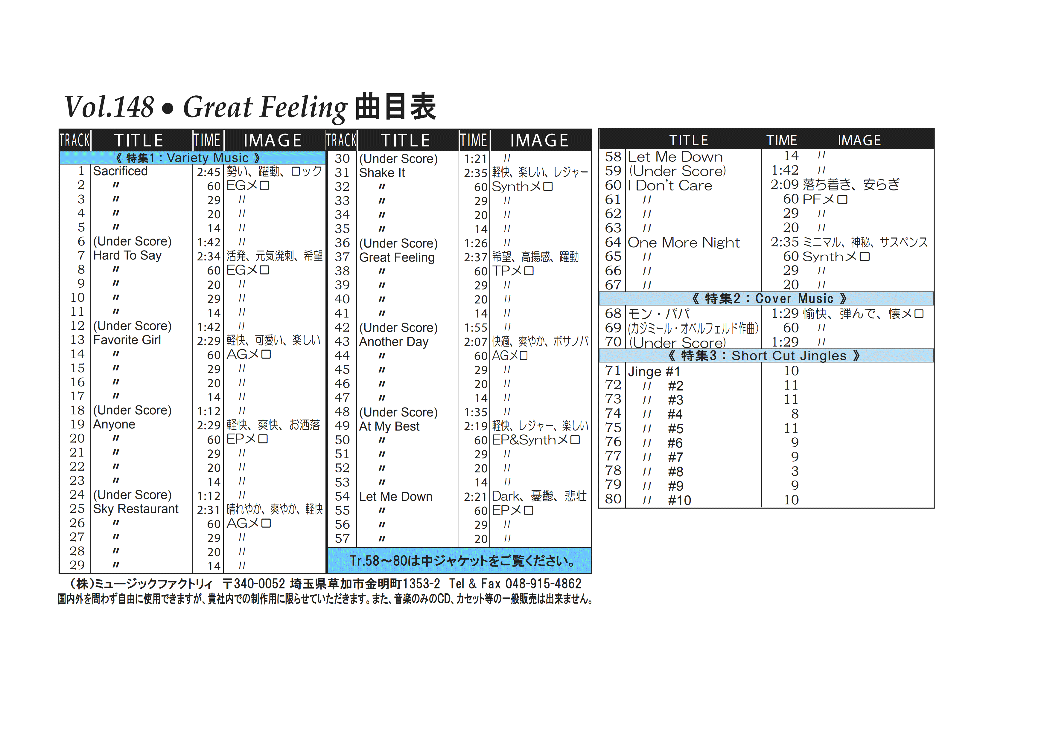 ・Vol.121 Beautiful Autumn ・Vol.122 Happy New Style ・Vol.123 Go to New Season ・Vol.124 Summer Tension ・Vol.125 Good Feeling Music ・Vol.126 Silver Lining ・Vol.127 Hope For The Future ・Vol.128 La Pasion ・Vol.129 Lifetime Chance ・Vol.130 Always Music
