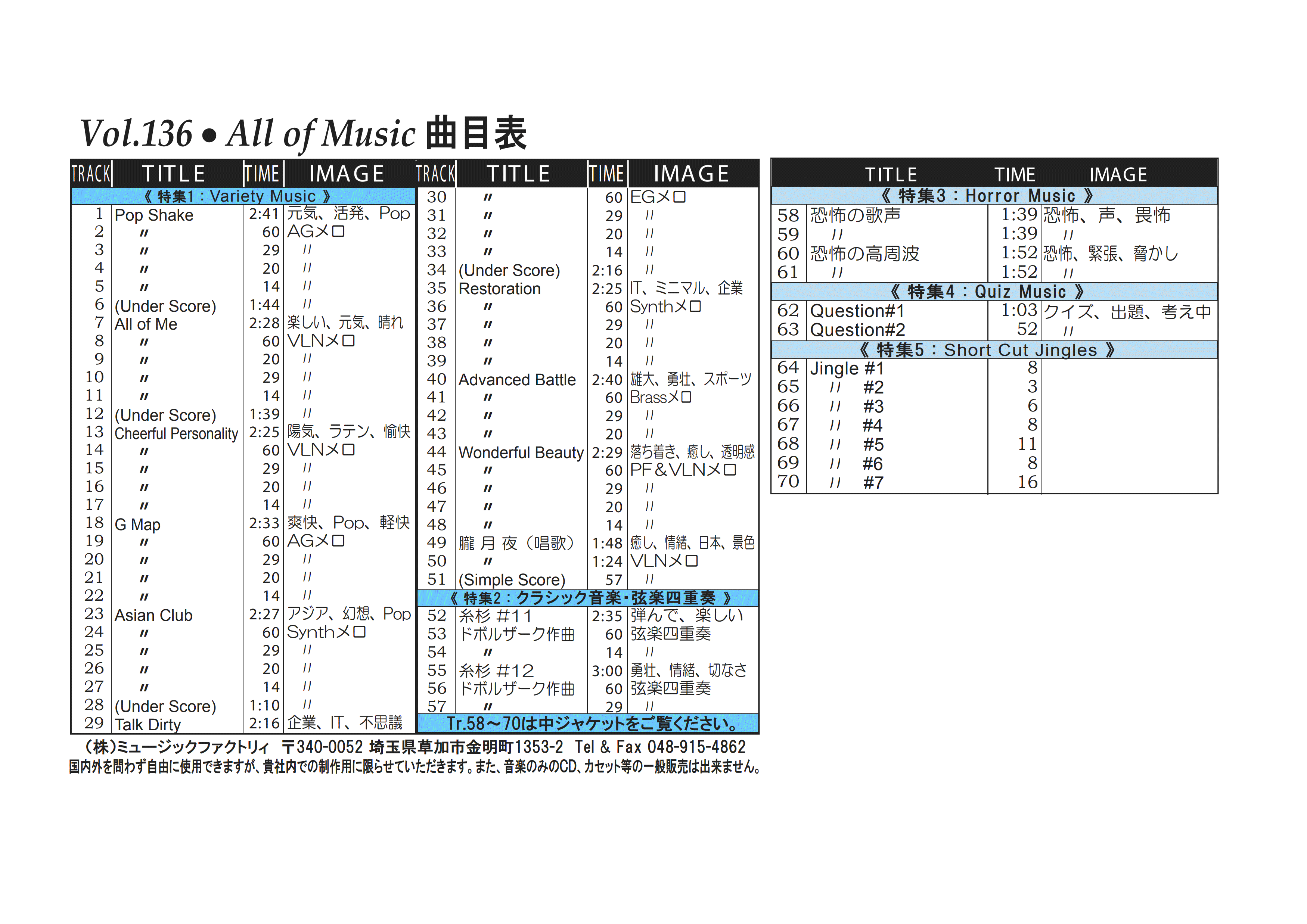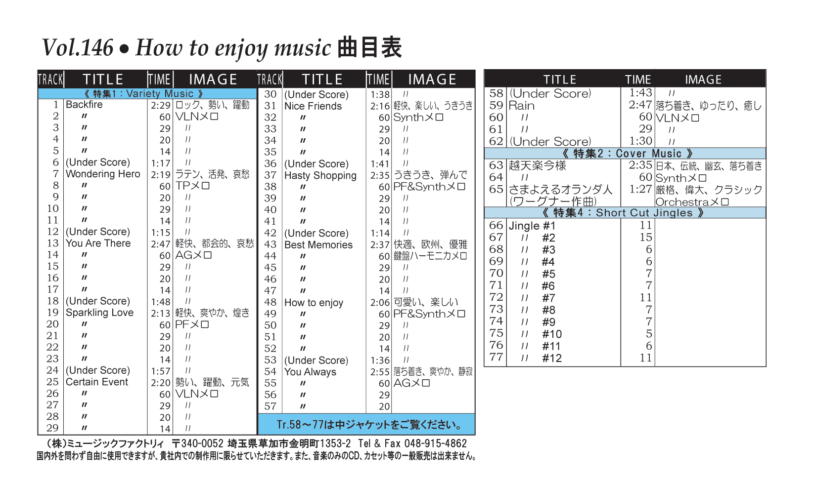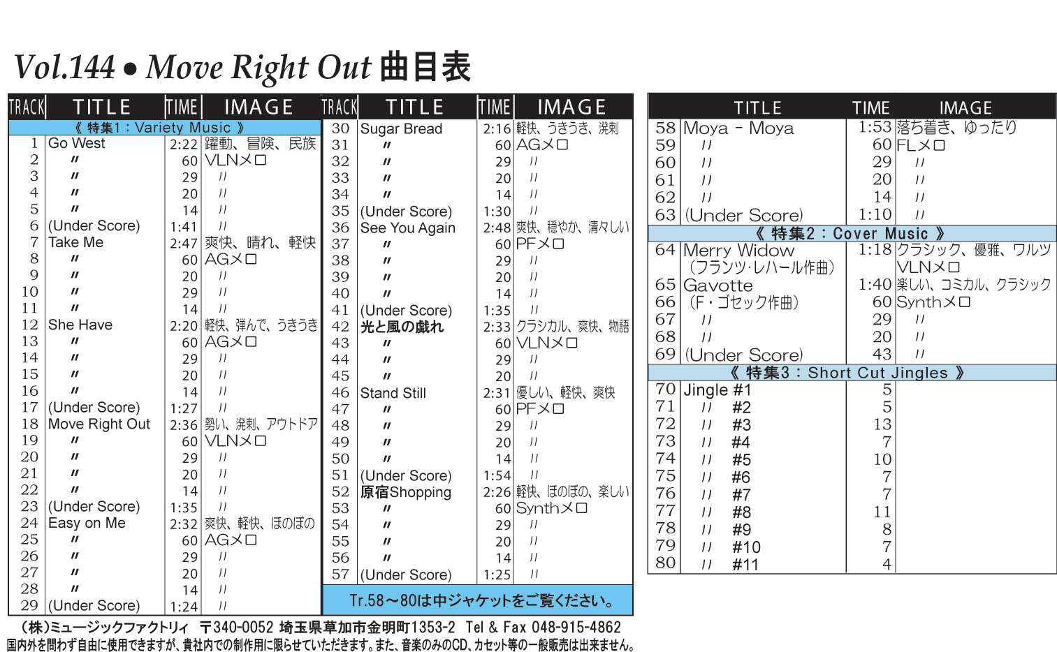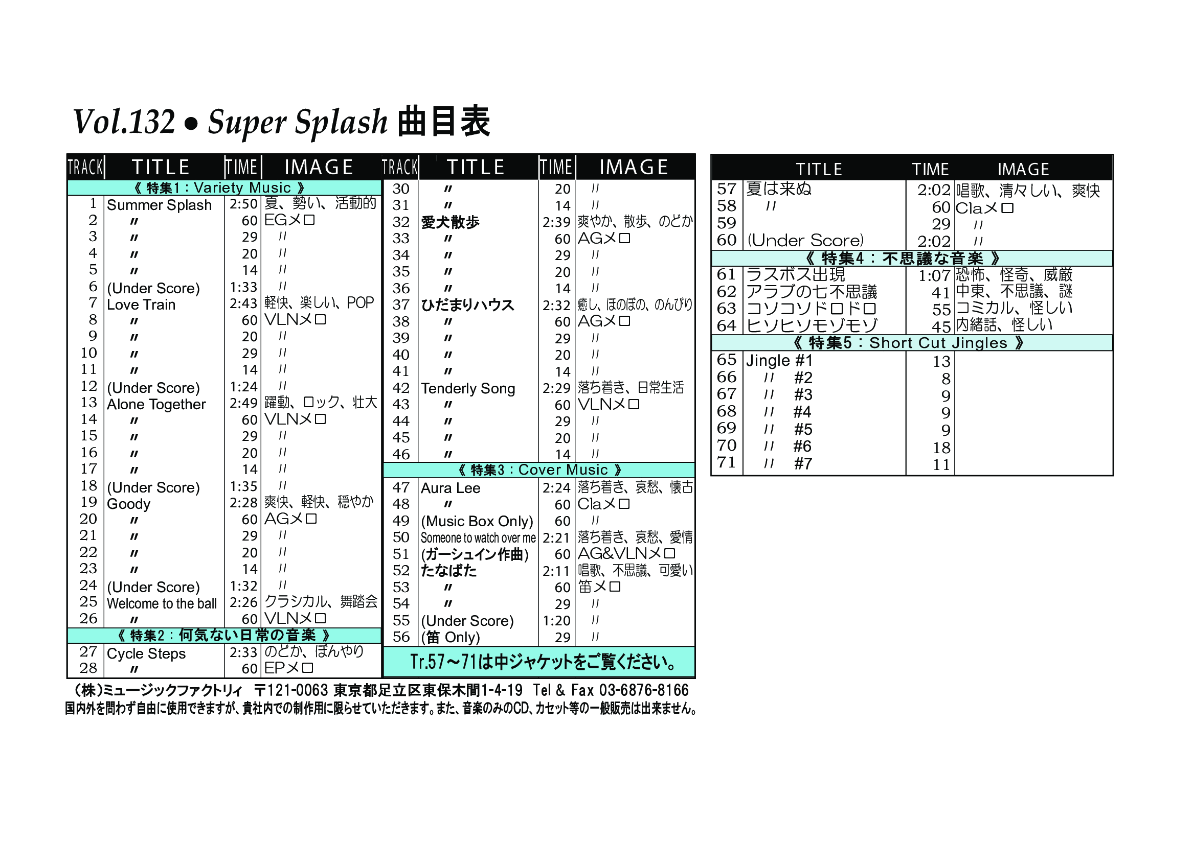 ・Vol.121 Beautiful Autumn ・Vol.122 Happy New Style ・Vol.123 Go to New Season ・Vol.124 Summer Tension ・Vol.125 Good Feeling Music ・Vol.126 Silver Lining ・Vol.127 Hope For The Future ・Vol.128 La Pasion ・Vol.129 Lifetime Chance ・Vol.130 Always Music
